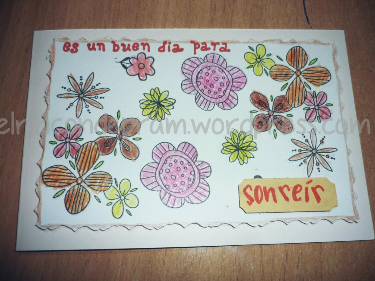 Una vez coloreado, lo pegué sobre una cartulina de 10 x 15 cm.