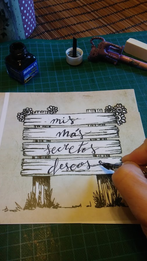 por dentro también le he puesto papel decorado de Art Scrap, y como podéis ver ya he puesto mi primer deseo...
