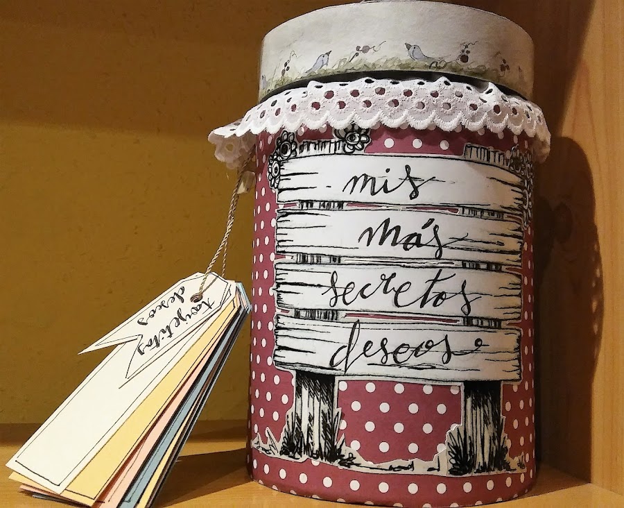 Ella en lugar de tarrrito tiene una bolsita con sus sueños y yo me he hecho un tarrito donde poner los deseos e ilusiones que tengo, cositas que he visto y me gustan y quiero comprarme o hacer algún dia y así tener esa ilusión y algún día comprarmelas o hacerlas, o para que mi friki y mi trasto tengan una ayudita a la hora de comprarme un regalito..
