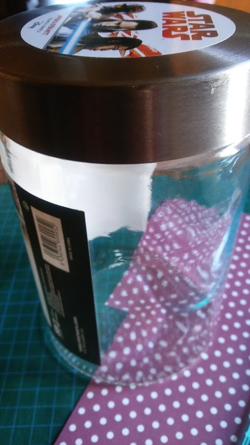 le he birlado el bote del delantal de Star Wars a Jordi, jeje, y lo he tuneado,