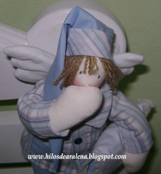 Mi siguiente muñeco Tilda , es un ángel con sueño que acompañara todas las noches a Tobías.