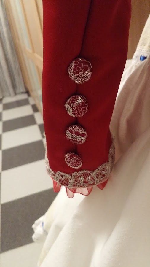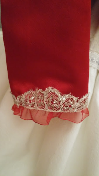 DETALLE DEL PUÑO REMATADO CON CINTA DE GASA Y RECORTE DE CHANTILLY