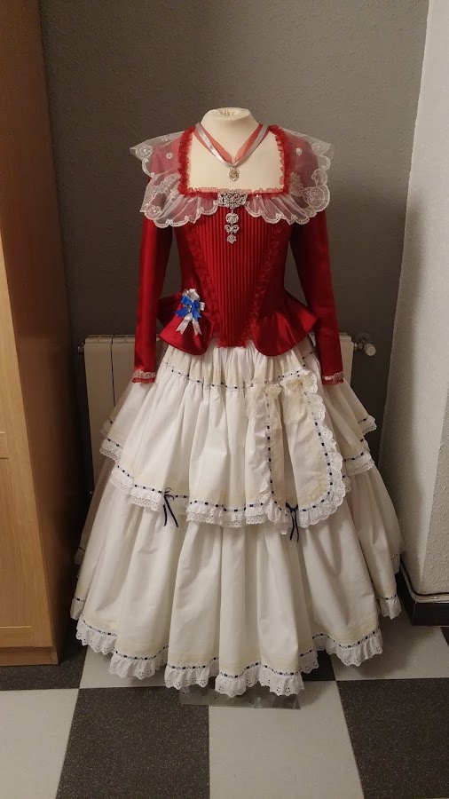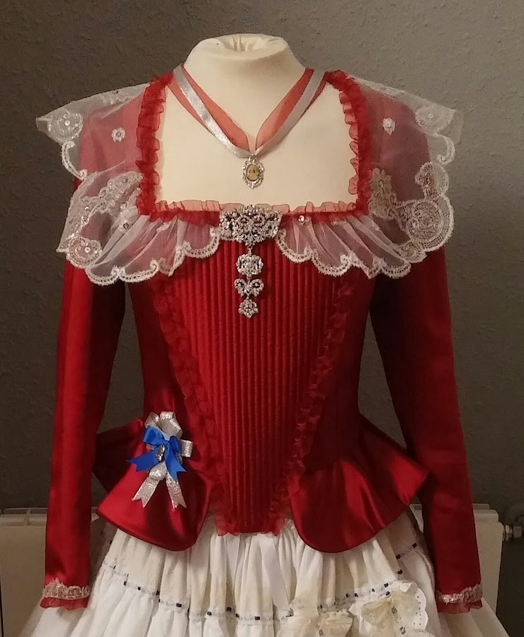 CORPIÑO EN COLOR ROJO CEREZA A JUEGO CON UNO DE LOS COLORES DE LA FLOR DE LA FALDA