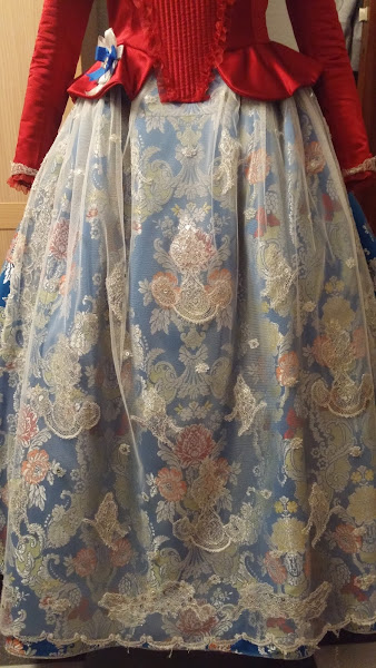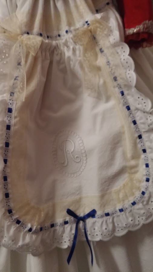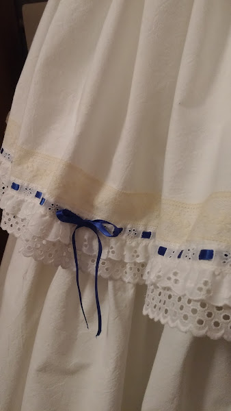 LAS ENAGUAS LLEVAN TIRA BORDADA Y PUNTILLA Y REMATADA CONCINTA DE RASO AZUL