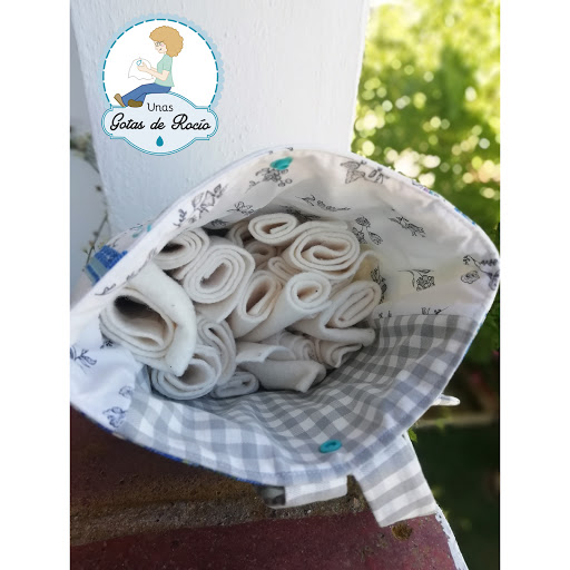 Los laterales y trasera lleva la tela de Holly Hobbie que tanto he usado desde que la compré y a la que tengo tanto cariño.