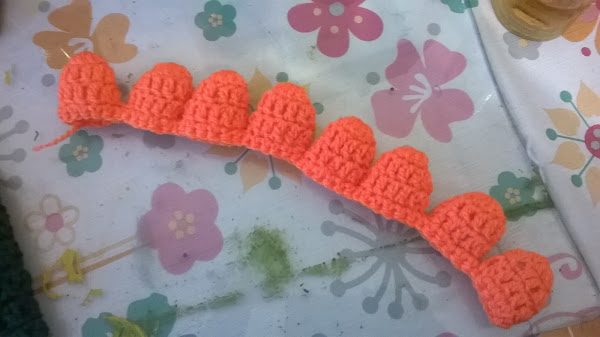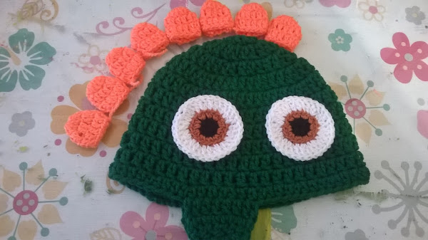 No se porque pero los ojos me costaron mucho trabajo entre la textura del hilo y el gancho de 3mm o se me atoraba o se me resbalaba,al final conseguí el efecto deseado y los he separado porque los dinosaurios tienen los ojos como los reptiles por cada costado.