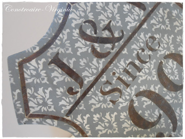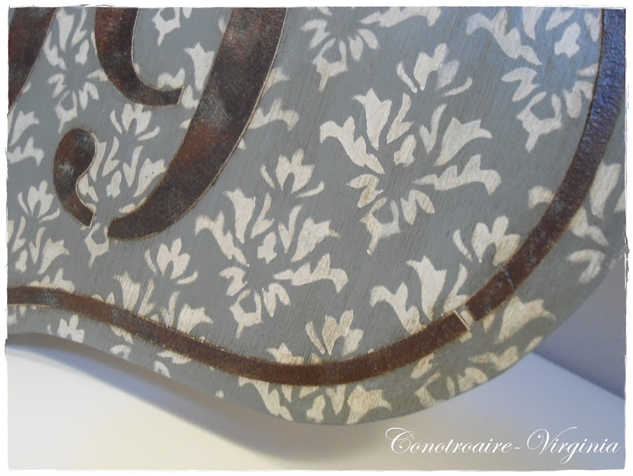 El stencil con nuestras iniciales, lo he hecho en relieve, y luego lo he pintado en imitación oxido.