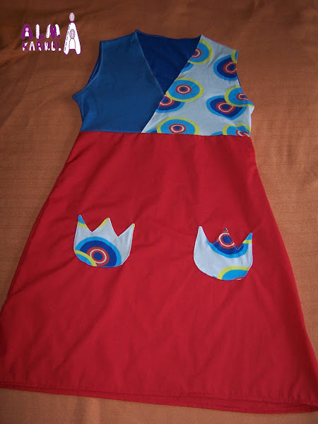 Y para romper la monotonía del rojo unos bolsillos con forma de flor de la misma tela de la parte de arriba.