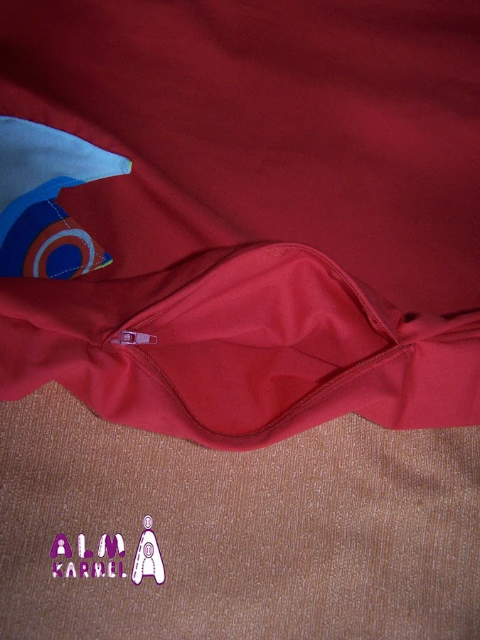 Abajo un popelín en rojo, que para darle un poco de holgura a la hora de ponerlo, lleva una cremallera en un lateral.