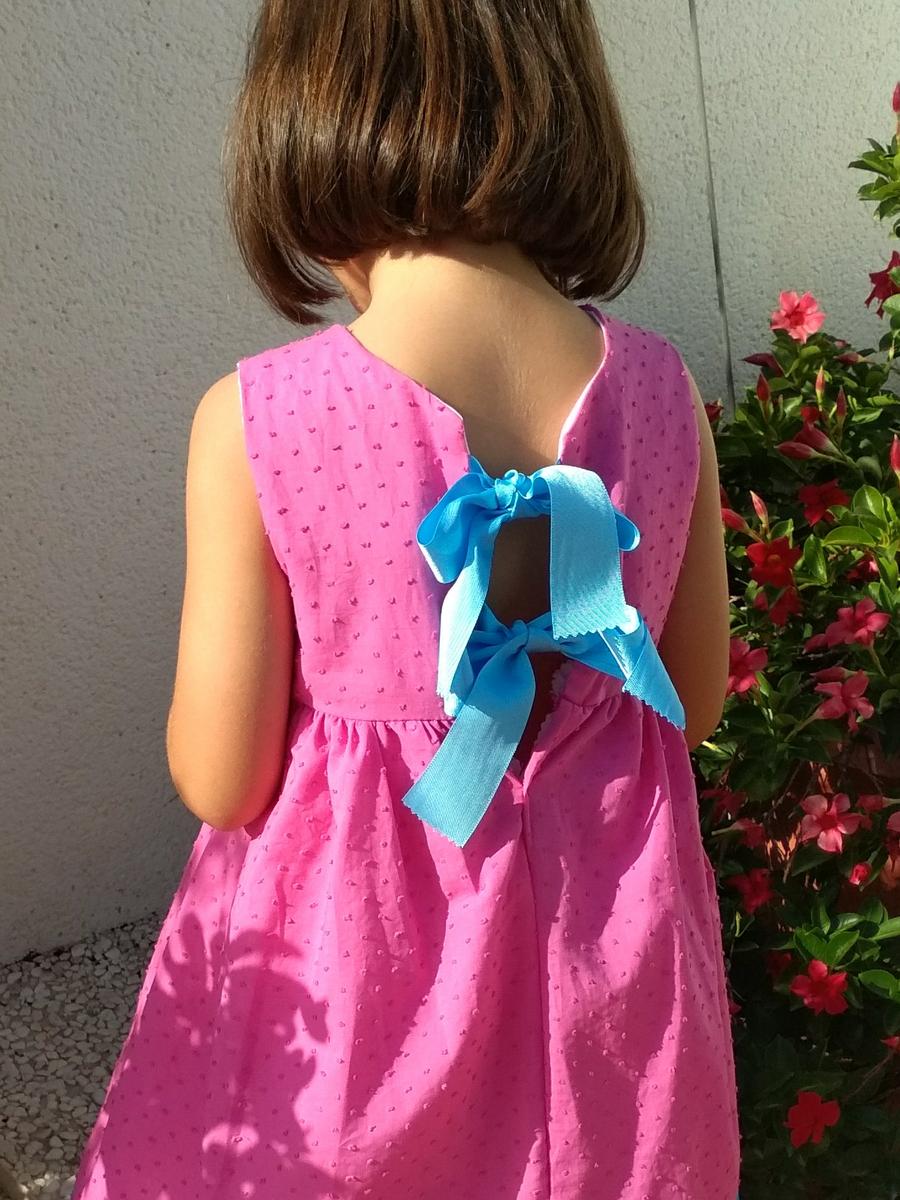 Y digo que he ido sobre seguro porque el año pasado ya le hice un vestido con este patrón y fue sin duda el más usado del verano. Lo tiene todo, es sencillo, fresquito y el detalle de los lazos en la espalda lo hace muy coqueto, por lo que se puede usar también para ir más vestida.