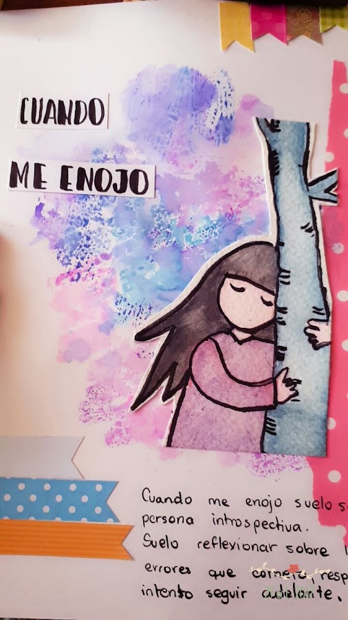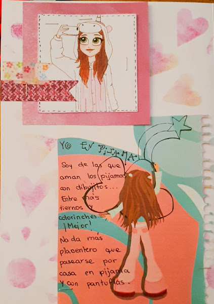 Yo en pijama. Base de papel realizado en acuarelas por mi. Recorte de papel de scrap.