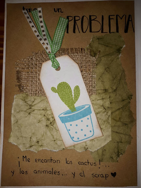 Papel batic hecho por mi en tonos tierra y verde. Papel craft. Sello de cactus. Arpillera