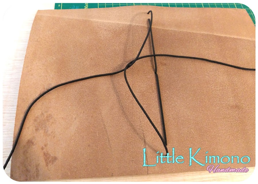 7. Hacemos un nudo doble, yo lo coloco en la parte superior y así las tiras del cordón sirven de marca páginas ;)