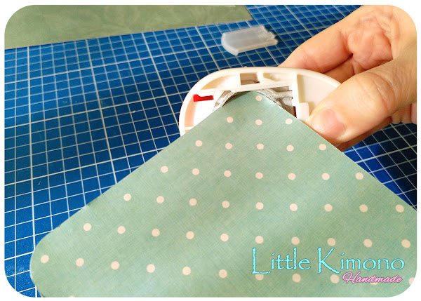 4. Ahora haremos el sobre, cortamos una pieza de 12x 18cm y doblamos 1cm abajo y a la izquierda para pegarlo. En la esquina derecha superior vamos a redondear como os enseñé antes.