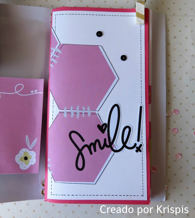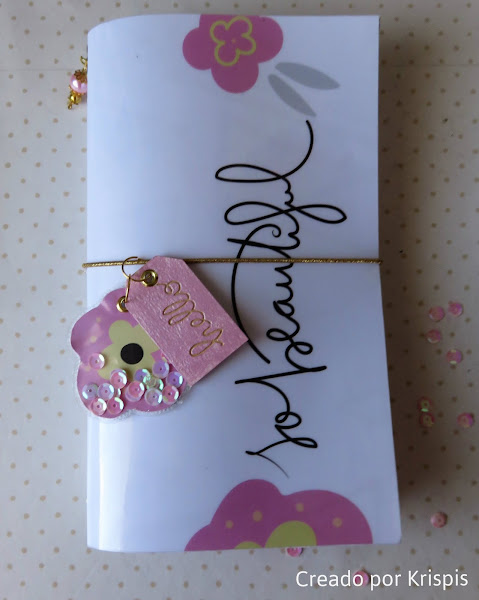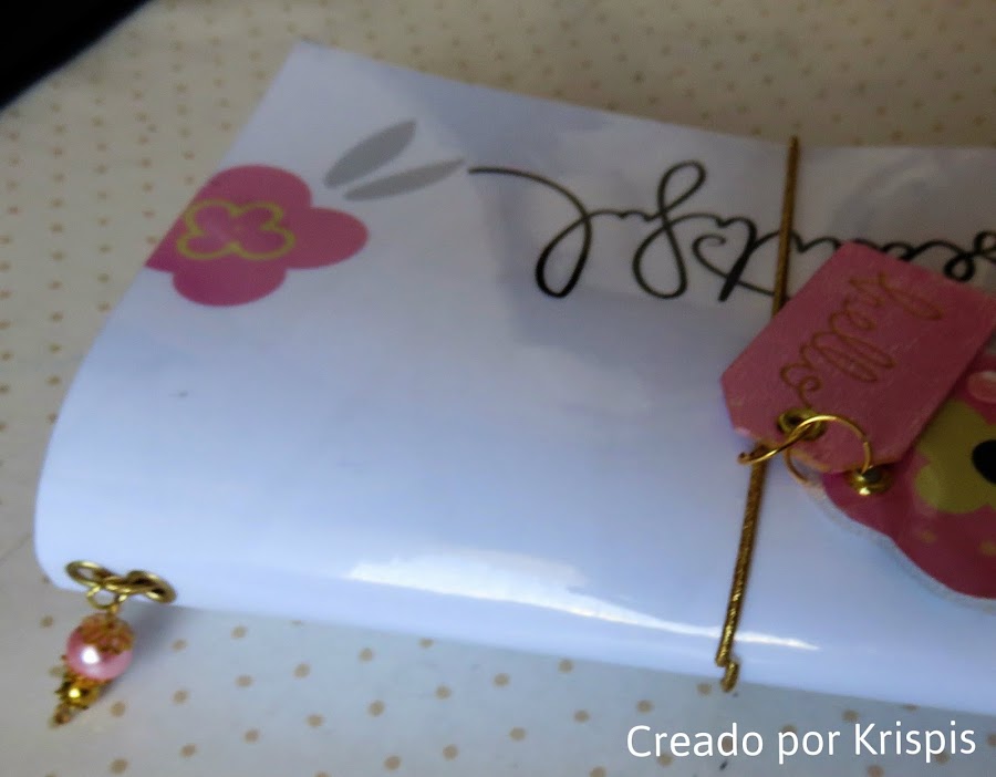 Para terminar las libreta que he hecho desde cero, con folios blancos y rositas y las tapas con cartulinas que he ido decorando con las tarjetas de la colección.