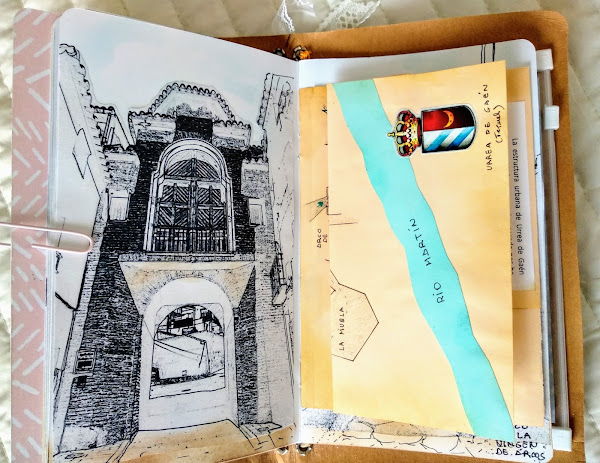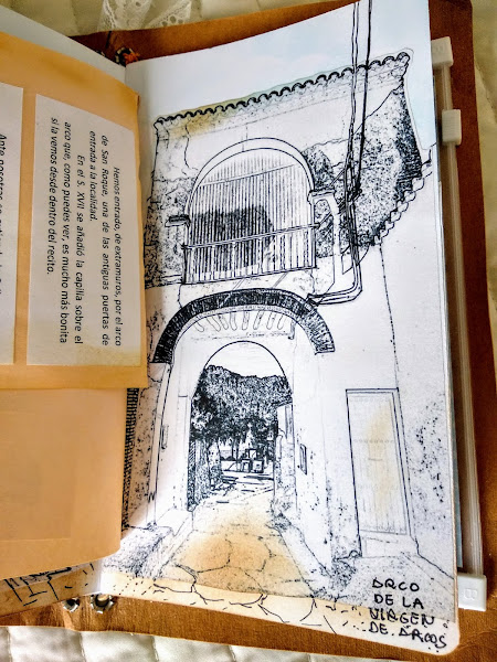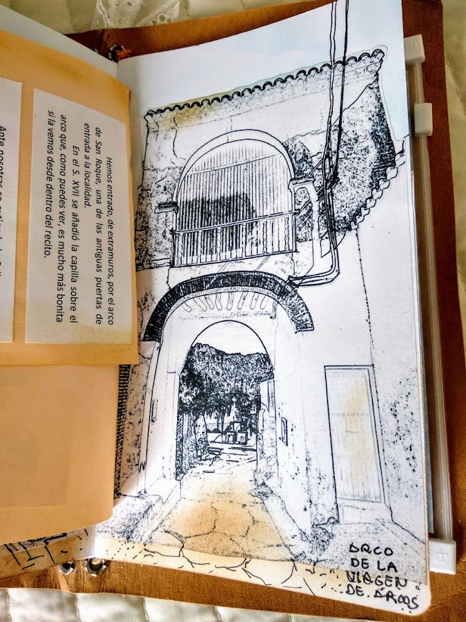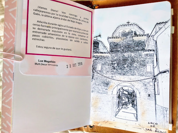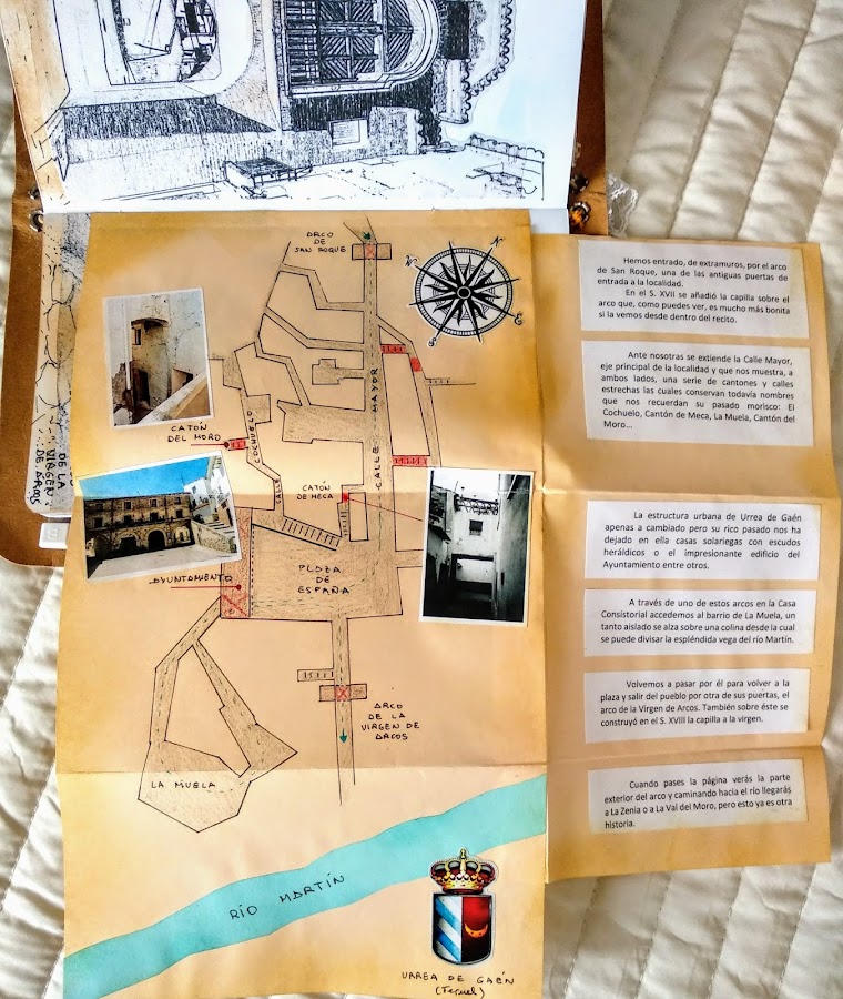 Recorrer la última aljama de Aragón tiene su encanto y también su misterio, además de los dibujos de los arcos de entrada y salida al pueblo incluí un plano, la ejecución es sencilla y totalmente manual, nada de escalas ni cosas de esas, también lleva pequeñas fotografias y el texto que he escrito en el ordenador porque mi letra es un poco regular y no quedaría demasiado bien.