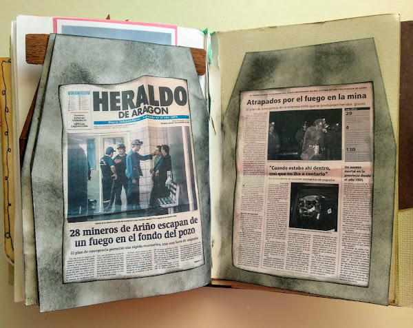 Para las páginas de este pequeño midori he usado diferente materiales que le han dado texturas distintas: madera, cartón, papel... y como podéis ver, todo muy entintado.