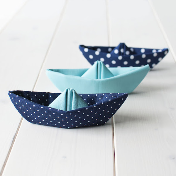 Y si nosotras mismas volvemos a nuestra niñez podemos crear unos barquitos tan bonitos como estos ¡pero de tela! Los pasos son los mismos que los barcos de papel de toda la vida, pero al ser de tela nos durarán mucho más y le podemos dar un sinfín de usos: crear guirnaldas o móviles, decorar un regalo, utilizarlo como marcasitios, etc.