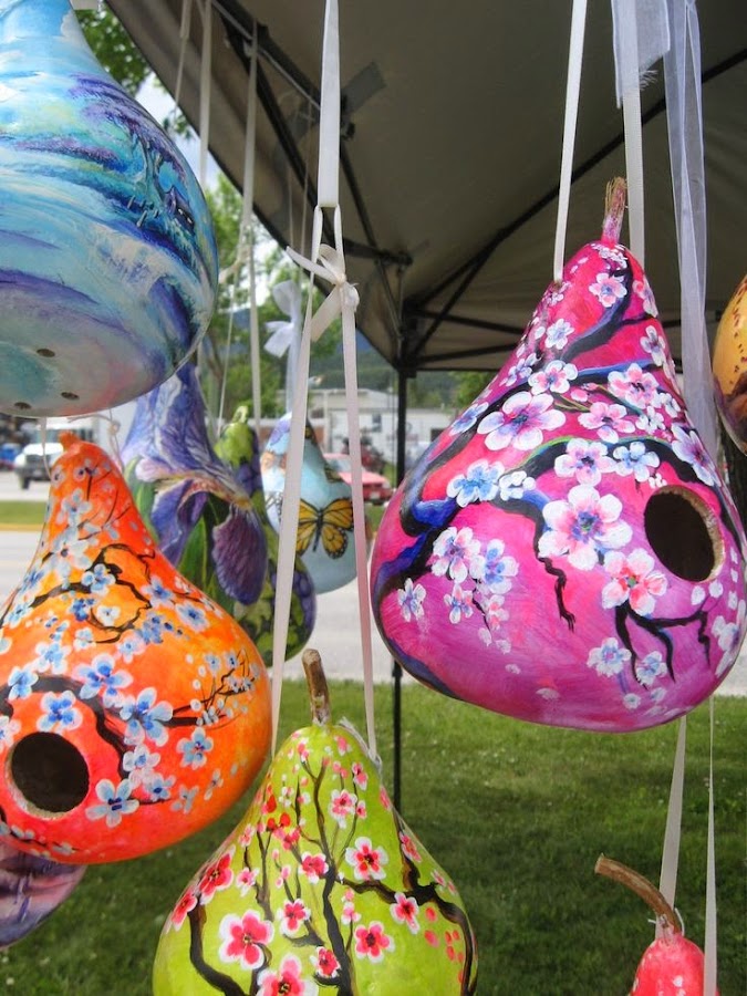 ¿A que son preciosas estas casitas para los pájaros? Pues están hechas a partir de calabazas que han vaciado y pintado. Así de fácil y espectacular, por que hay que tener muy buena mano con los pinceles para pintar esas bonitas flores y paisajes sobre una simple calabaza... Nosotras llenaríamos nuestro jardín (si lo tuviéramos) con ellas.