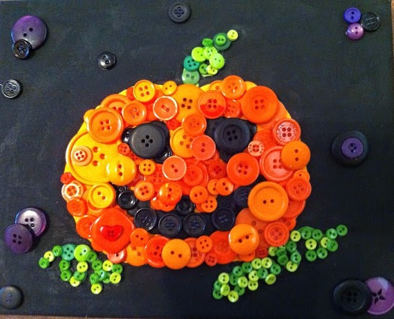 Nuestra segunda inspiración está llena de ¡botones! Pero tranquilos, no tenéis que poneros a coser a lo loco ;). Esta vez solo vais a necesitar una tabla, un poco de pegamento y un puñado bien grande de bonitos botones para conseguir un cuadro como este. Ahora que se acerca Halloween puede ser un adorno muy bonito para tu salón ¿verdad?