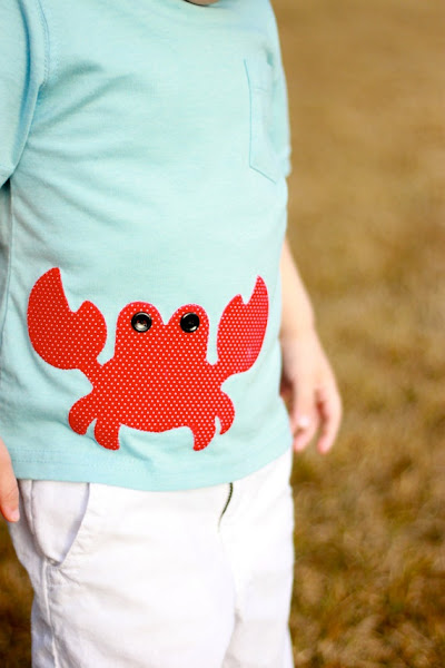 Una idea muy resultona, tanto para las camisetas lisas de los peques como para las nuestras, es adornarlas con algún bonito dibujo como este cangrejo que parece que se asoma por un lado. Tiene todos los puntos para convertirse en la camiseta favorita del verano.