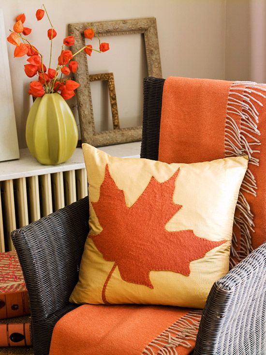 Los cojines nos encantan ¿os habíais dado cuenta ya? jejeje. Los vemos tan cómodos y útiles para decorar cualquier rincón que no podemos parar de recopilar ideas, como ésta para crear un espacio de lo más otoñal con una sencilla hoja en el centro del cojín.