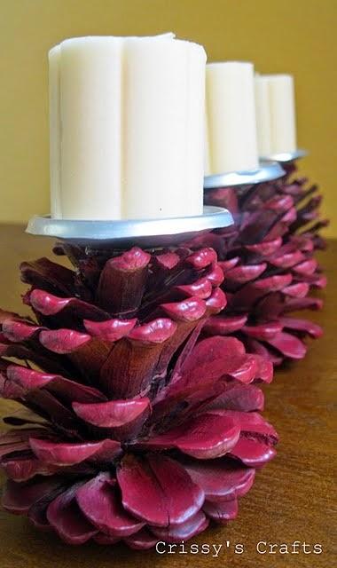 ¿Preferís decorar la mesa o un rincón del salón con unos candelabros en vez de los marcasitios? ¡No hay problema! Sólo necesitaremos pintar unas piñas más grandes y con una buena base para colocar encima las velas y que no se muevan. Queda muy bonito ¿verdad?