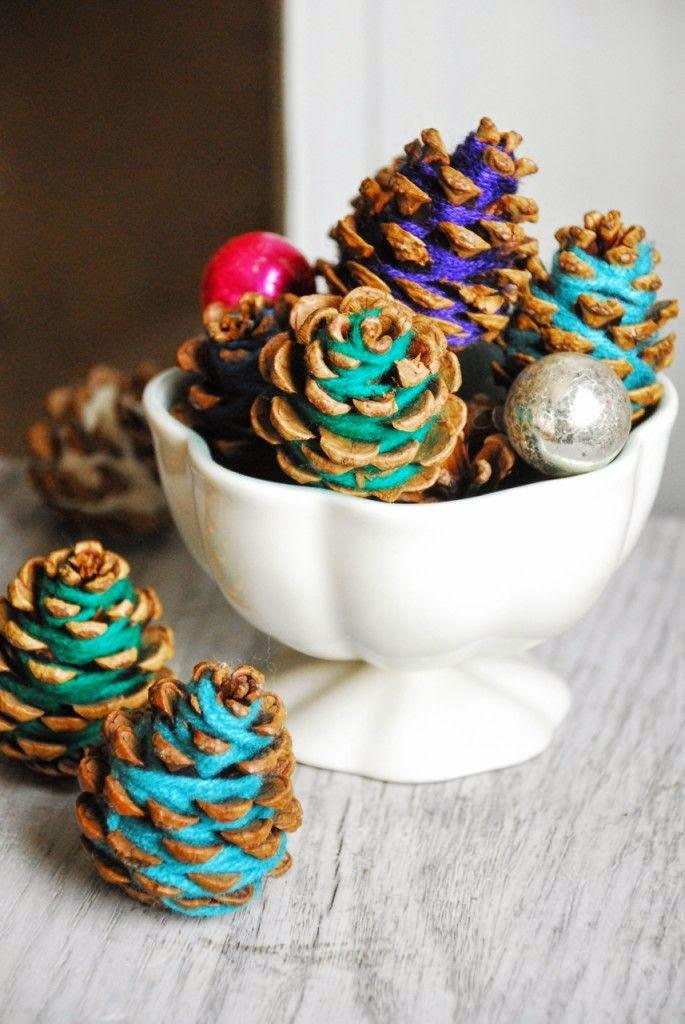Y esta última idea, aunque no incluye piñas pintadas, nos ha encantado, así que os la traemos de regalo ;). Han conseguido darle color a las piñas liando hebras de lana alrededor de los huecos de las piñas. Como veis en la foto, el resultado es espectacular.