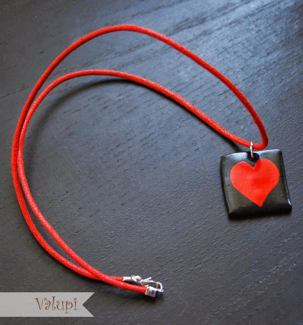 Nuestra siguiente propuesta es el colgante de fimo "Big heart", es la opción perfecta si a tu pareja le gustan los accesorios sencillos pero llamativos. Por la combinación de colores en rojo y negro lo podrá llevar cada día y acordarse de la persona tan especial que se lo regaló.