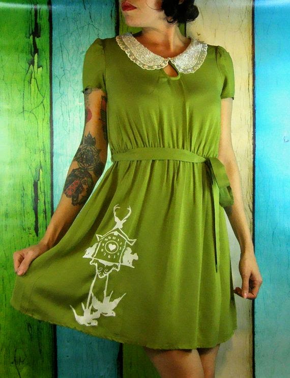 Y hablando de ropa, este vestido con aire retro y cuello redondo de puntilla ¡nos ha encantado! El detalle en la falda con el dibujo del reloj de cuco en blanco queda precioso y le da ese toque especial para que no se quede en un vestido más.