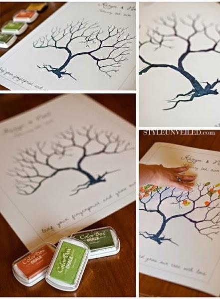 Por último, os traemos una idea para que el recuerdo de todos los invitados a la boda perdure en el tiempo. Tan sólo tienes que poner una lámina con un dibujo con un árbol (u otra imagen que te guste) y poner unas cajitas de tinta para que los invitados puedan plasmar su huella como si de una hoja se tratase. En Mi boda DIY encontramos dos divertidas láminas para descargar, ¿a qué esperas?