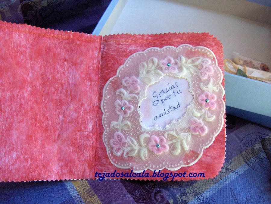 Yo recibí de Margarita una preciosa tarjeta realizada con la técnica del pergamano.