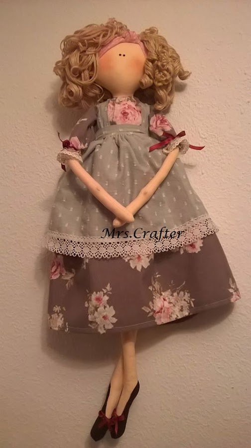 Este es el nombre que he puesto a la última muñeca salida del taller. A medio camino entre el estilo country y vintage, con sus tonos grises y rosas, muy sencillo el vestido, y con un pelo lleno de rizos que le dan un encanto especial. mas de una la ha elegido ya para su próximo taller.