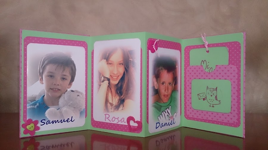 Esta vez os quiero mostrar el miniálbum tipo acordeón que realicé a modo de modelo para el taller de scrapbooking que impartí hace unas semanas en la clase de sexto de primaria de mi hija mayor.