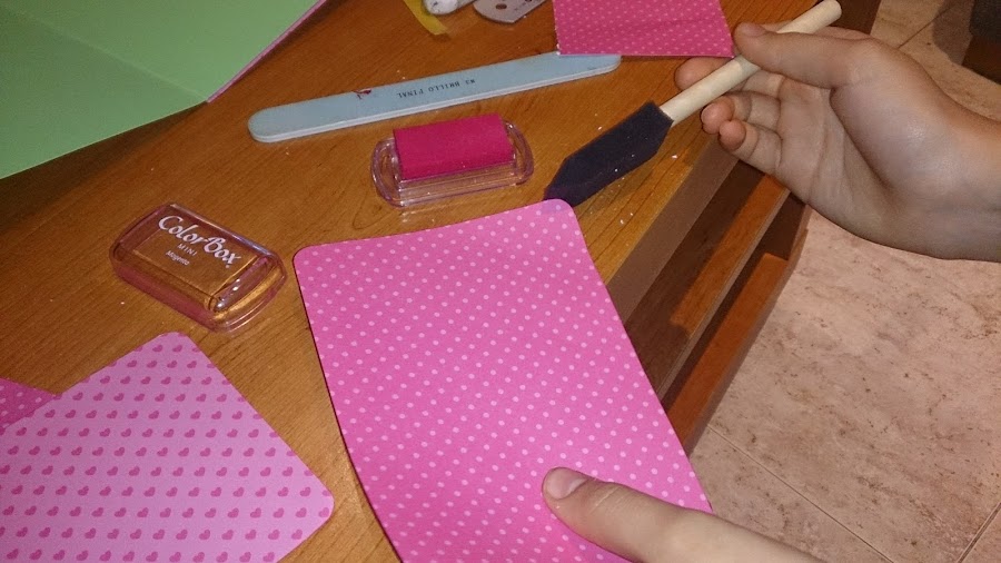 Como realicé un tutorial con fotografías e instrucciones de cómo elaborar paso a paso el miniálbum os muestro las fotografías que hicé. Es la primera vez que tomo fotos de como trabajo.