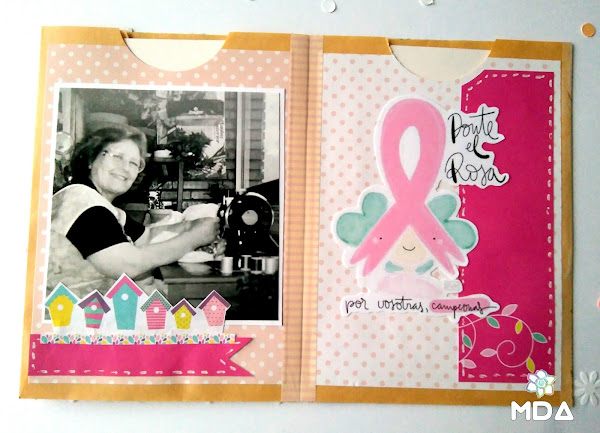 Los unimos entre ellos con washi tape después de cerrarlos y cortar un poco en la parte de arriba para que nos quedaran unos bolsillos. En ellos metimos unas tarjetas con nuestras fotos favoritas.