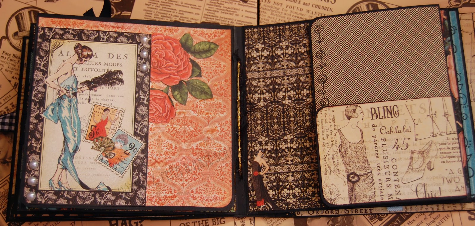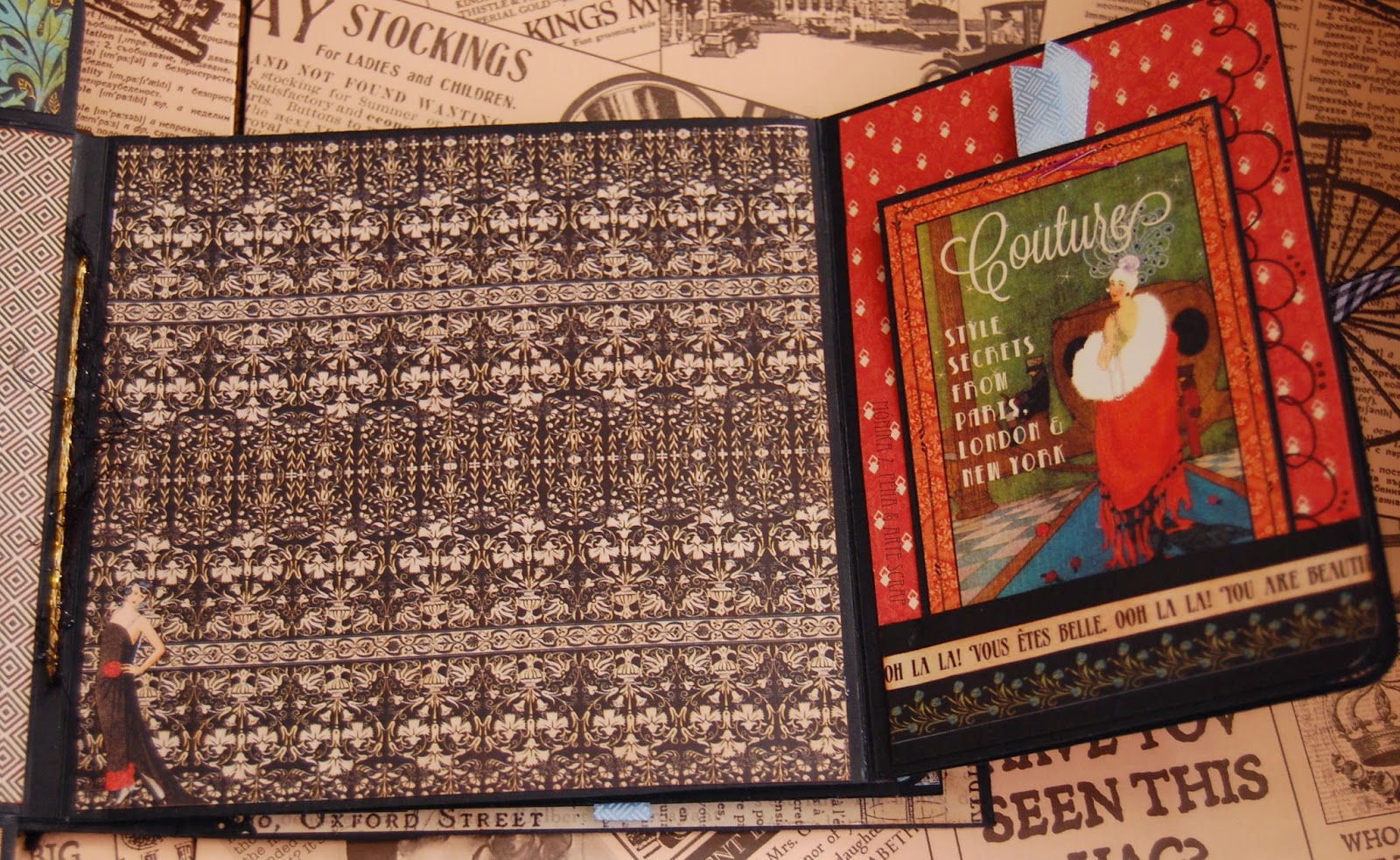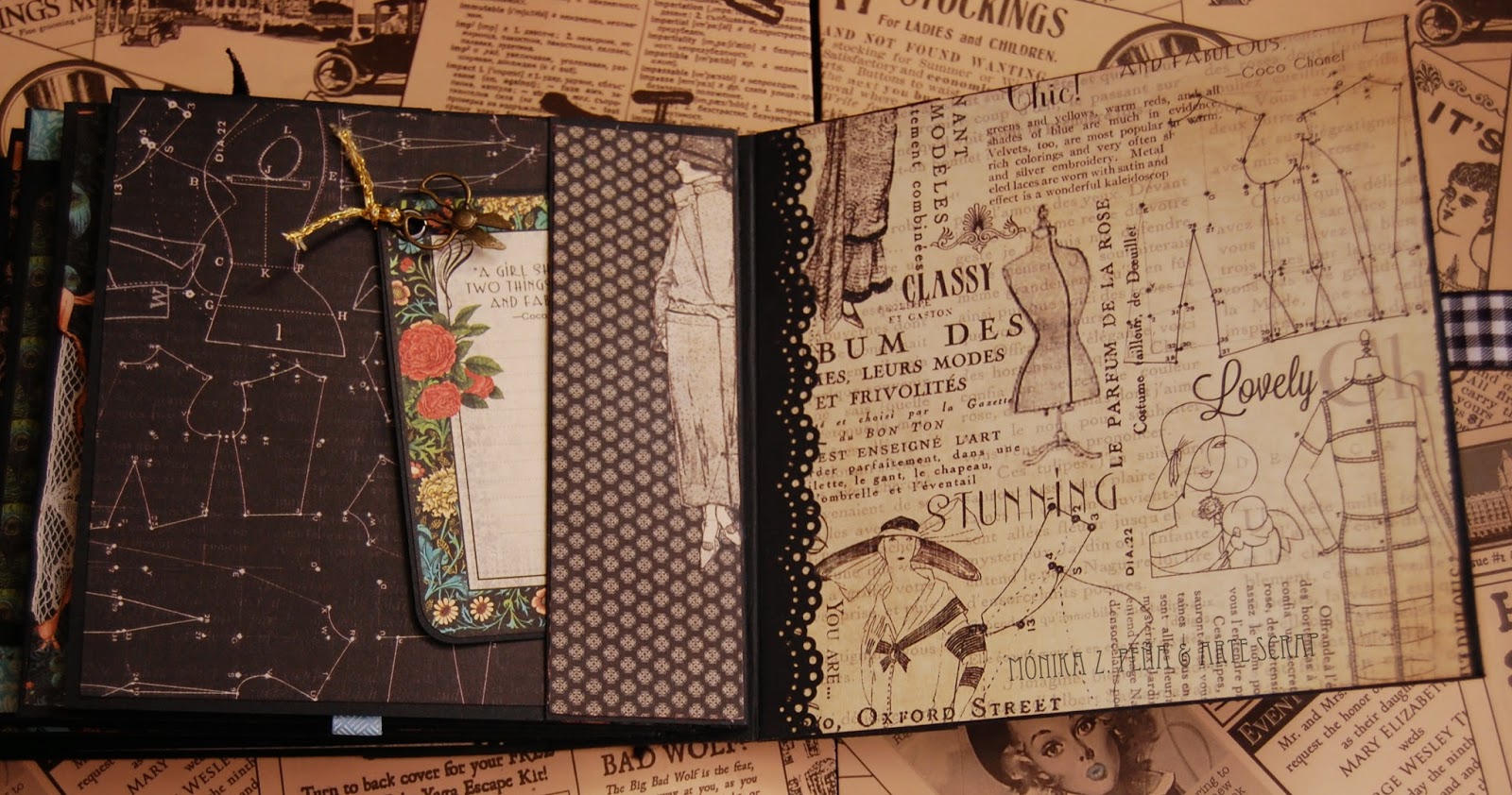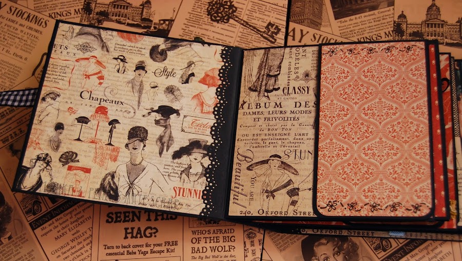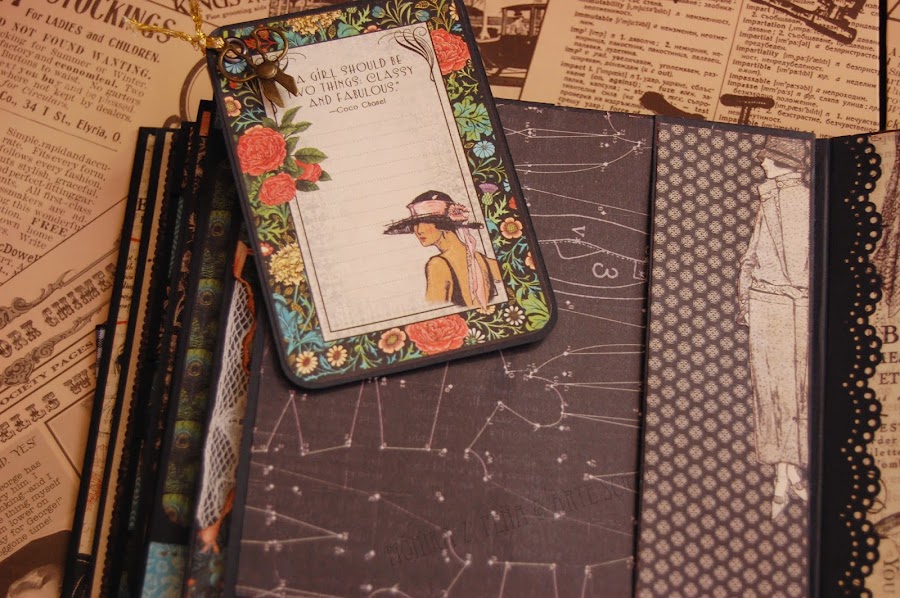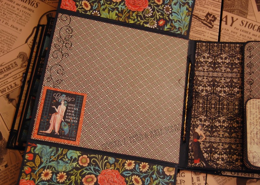 Para este mini álbum he utilizado la colección de papeles de Graphic 45 " Couture". Es una colección preciosa y elegante, aunque esto se podría decir de todas las colecciones de G45, ¿no?...