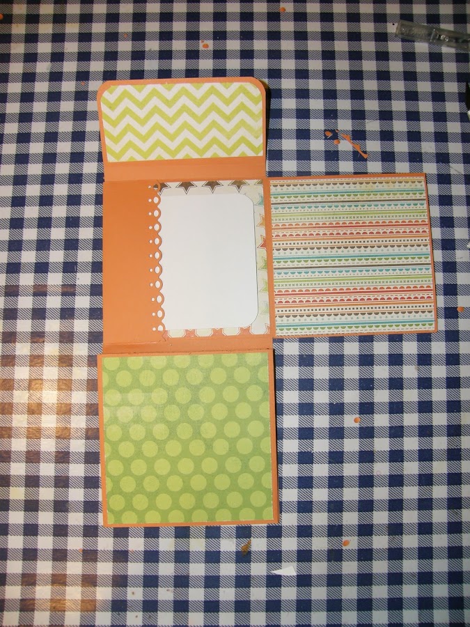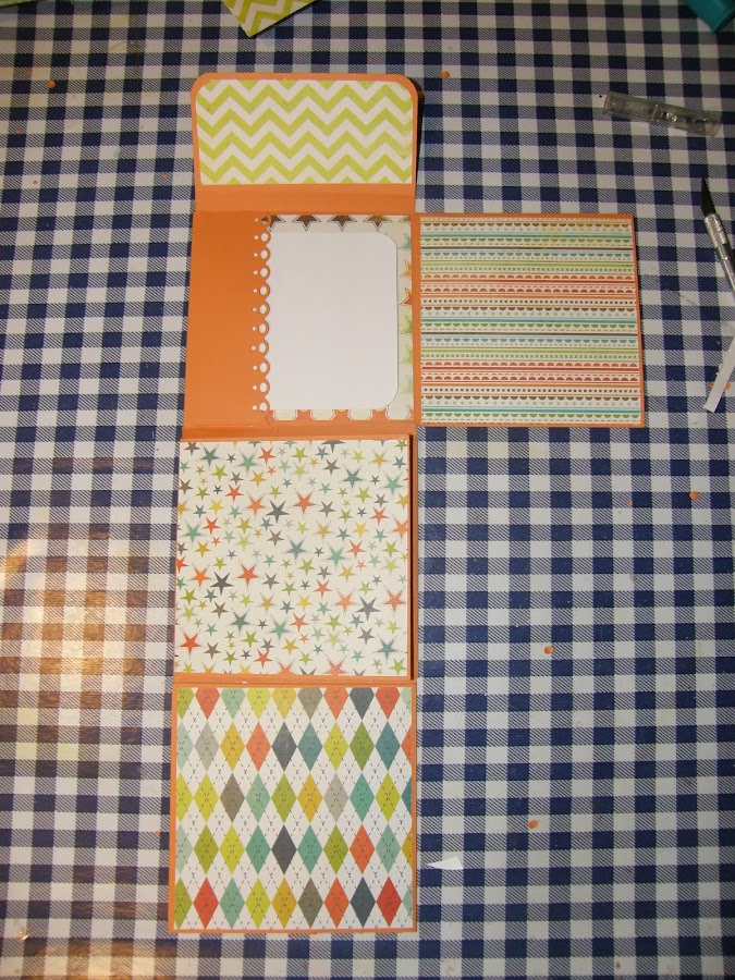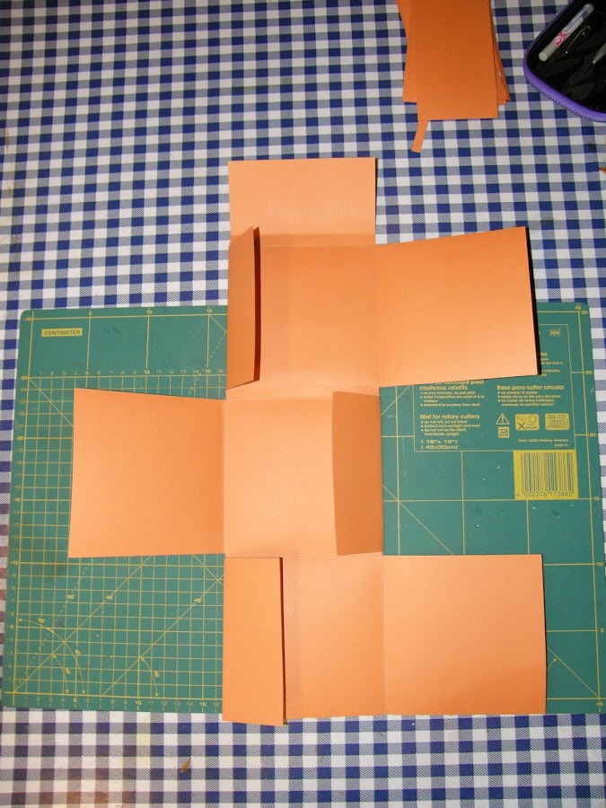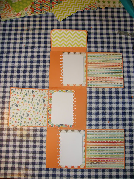 Los diferentes dobleces y plegados, he dejado separación para que pueda tomar grosor al pegar los papeles decorativos, tarjetas y fotos.