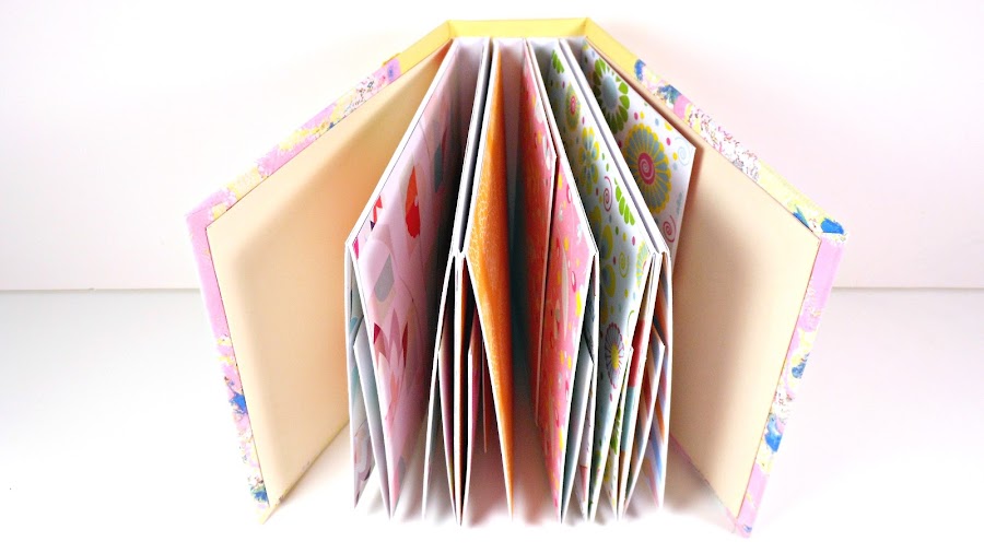 Como ves, es muy sencillo de hacer y tiene como ventaja que podemos meter muchísimas fotos en poco espacio y podemos jugar con los plegues y ponerlos como más nos guste. En el vídeo te muestro una idea de cómo yo los he plegado, pero puedes plegar como más te guste, siempre que dejes espacio para pegar la estructura al lomo.