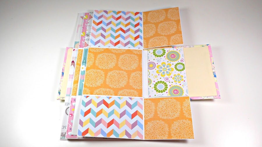La hoja se aprovecha al 100% y queda como en la foto. Te dejo el tutorial de este paso para que puedas ver con más detalle el plegado de la hoja y como pego las estructuras al lomo del álbum.