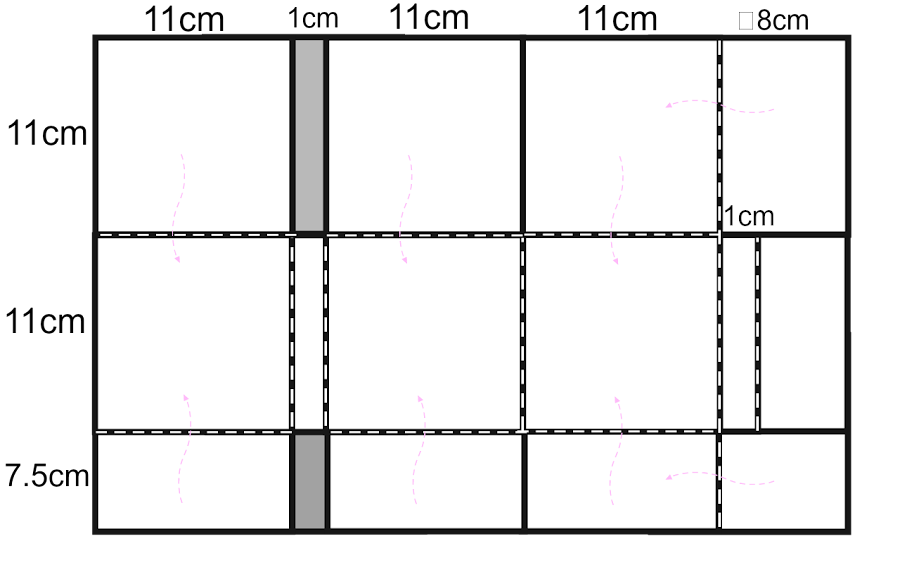 Y ahora te comento la segunda parte. Una vez tenemos las tapas que usaremos de portada para nuestro álbum, lo que nos queda es hacer la estructura interior. Para ello utilicé dos hojas de cartulina de tamaño A3 para trazar la siguiente estructura. (También puedes descargarla AQUÍ).