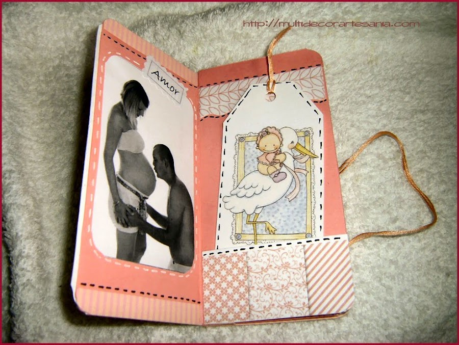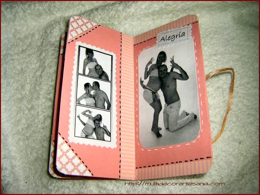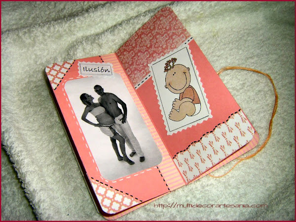 Este es el resultado de un trabajo realizado en la última Crop on line del grupo de FB Scrap para Principiantes, un mini realizado con una sóla hoja de papel de 30 x 30 cm que además tiene bolsillos para incluir pequeñas etiquetas con anotaciones y recuerdos de un momento especial.