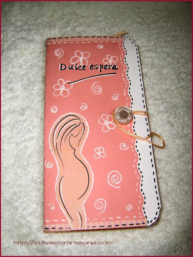 Utilizé, en lugar de papel decorado, cartulina en color rosa que estampé con un dibujo hecho con rotulador blanco y una sencilla imagen.