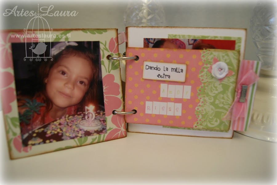 Pufff, casi 6 meses sin actualizar el blog !!!!!!! no tengo perdón.... He hecho muchas cosas, no os creais que he estado tomandome un tiempo sabático, pero nunca me acuerdo de hacer fotos .... soy un desastre. De esto si he hecho , asi que aprovecho para enseñaroslo. Es un mini album para poner fotos, el tamaño mas o menos es de 10x15cm. Es ideal para llevarlo en el bolso con las fotos de los niño ...