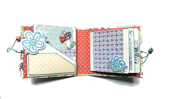 The mini album that Les Antònies are presenting today is a combination of purchase decorated scrapbook paper and of our own designs. We played with floral prints and bright colors to give a fresh and youthful air.
