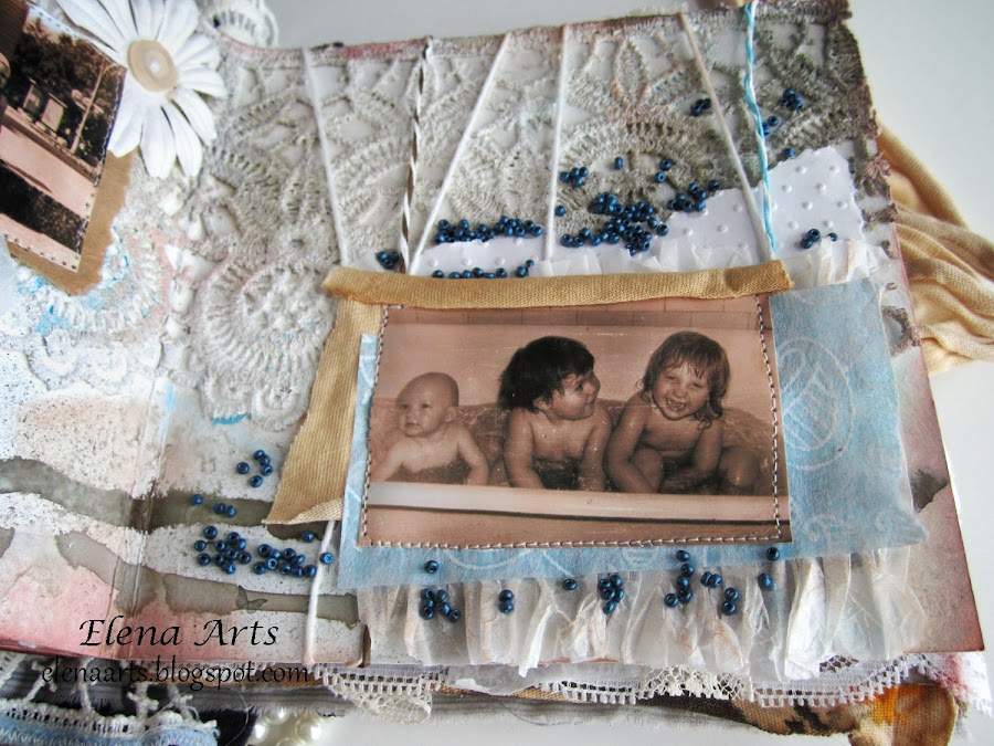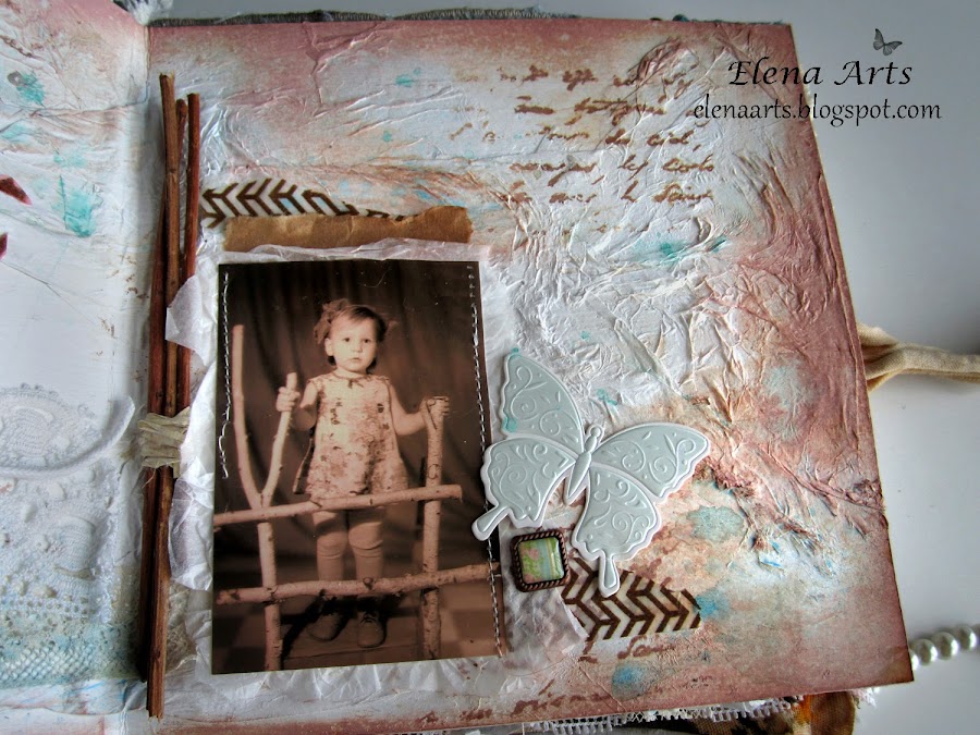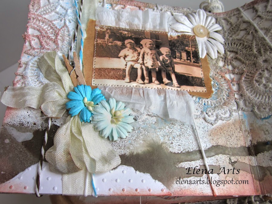Las fotos son todas mías de cuando era pequeña, de eso más de 30 años, jeje Por eso decidí hacer el álbum con unos toques de Shabby Chic, para ser 100% Shabby debería ser muy clarito!