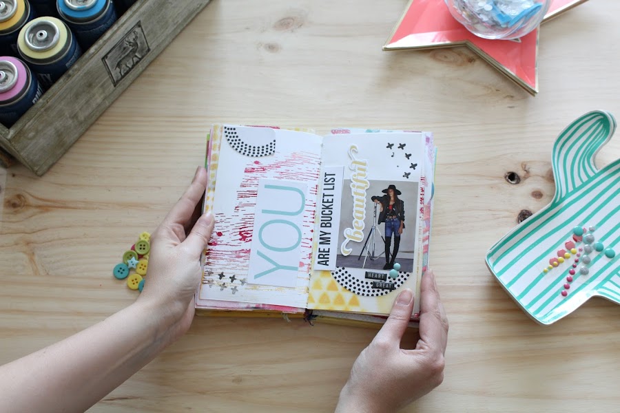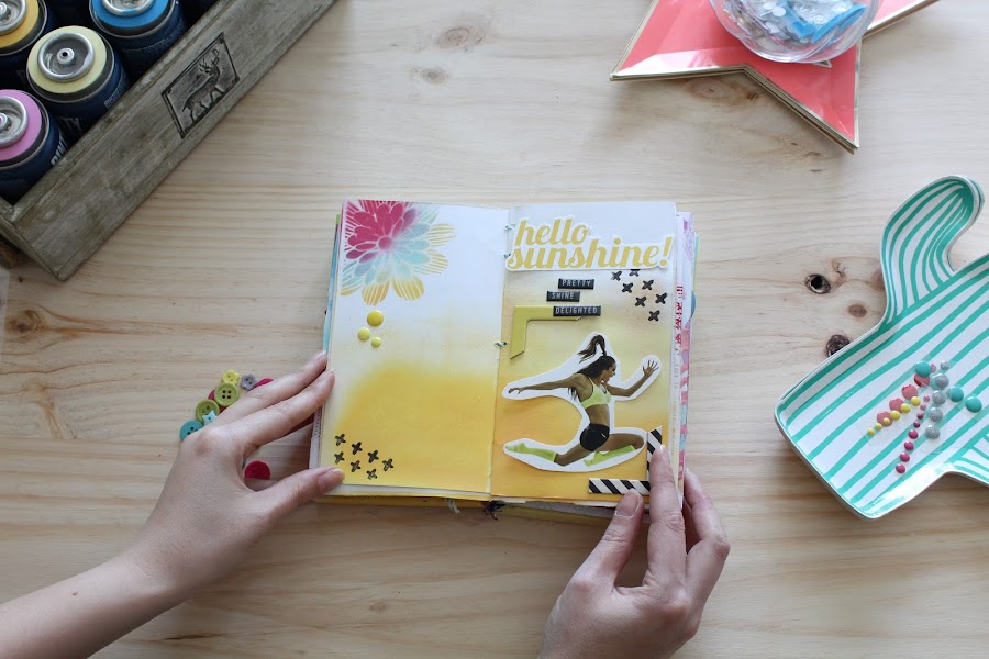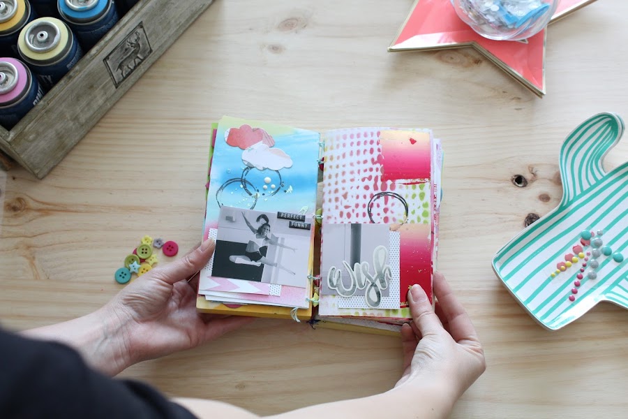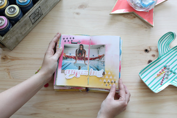 Y no hay mejor prueba que hacer un mini álbum de scrapbooking con los nuevos sprays y como protagonista la imagen de Novasol, Ona Carbonell.