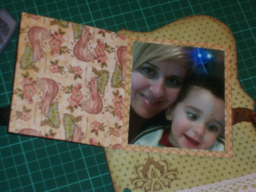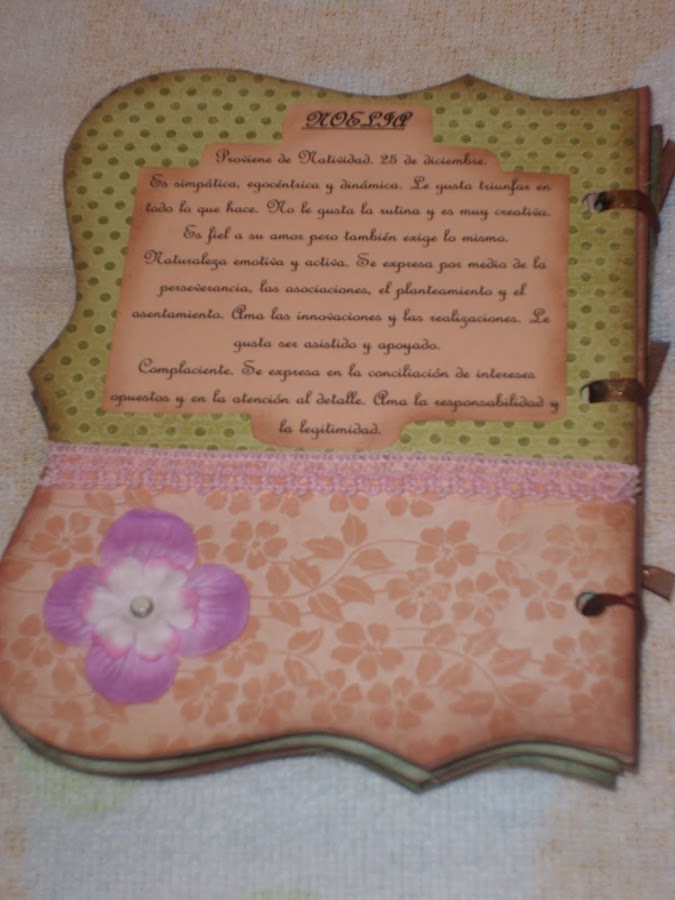 Despues de algún tiempo sin hacer ningún trabajo llegó el cumpleaños de mi amiga Noelia. Queria hacer algo especial y como ella es muy familiar se me ocurrió hacerle un mini con fotos de sus allegados.En complot con su hermana, que fue quien me pasó las fotos,este fue el resultado, y estoy totalmente segura que quedó encantada con el inesperado regalo.