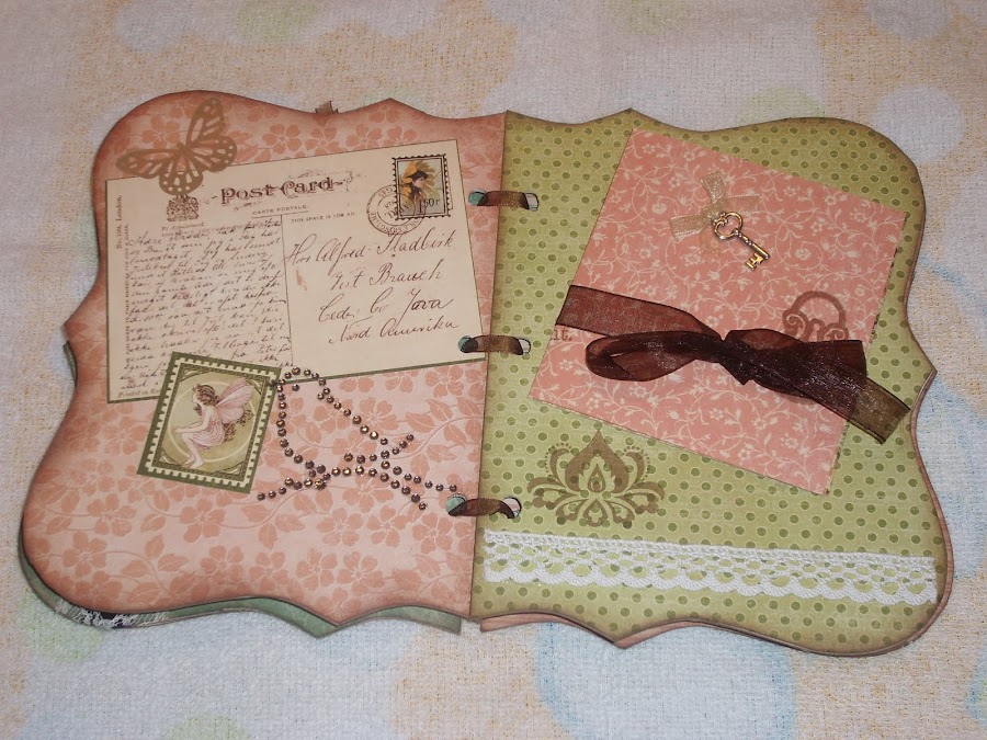 En esta ocasión he utilizado los papeles de la colección " Once upon a springtime " de Graphic 45, y tinta Versafine " Vintage sepia". Algunos sellos , cintas, flores y demas elementos decorativos que se pueden apreciar en las fotos.