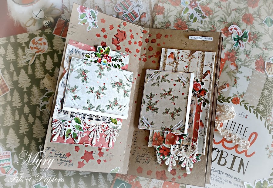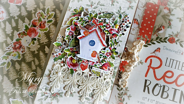 I used a few supplies for this mini album: "Little Red Robin" Dovecraft paper collection, some die-cuts by Roses Skap, Скрапбукинг, рукоделие, this gorgeous lace...